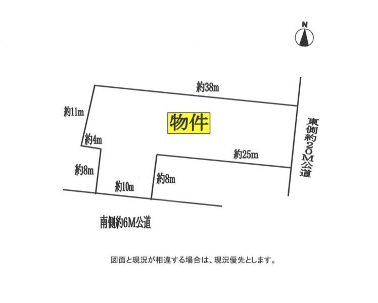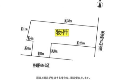 | 接道状況 | 東側約20M公道に約12m接道、南側約6M公道に約10m接道 |