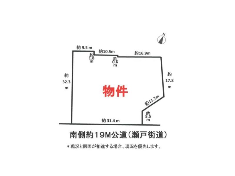 | その他 | 【南側道路境界より20m以北:第一種住居】 建ぺい率60%、容積率200%、23m高度地区、建築基準法第22条区域、盛土規制法、居住誘導区域内、都市機能誘導区域内 【南側道路境界より20m以南:近隣商業】 建ぺい率80%、容積率200%、準防火地域、砂防法、盛土規制法、居住誘導区域内、都市機能誘導区域内 【接道状況】 ・南側約19M公道に約31.4m接道 |
